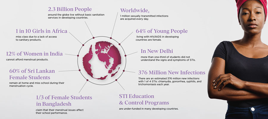 Our 1st initiative will address the issue of period poverty by distributing menstrual supplies to women and teens in need. So many are not aware of this global health issue affecting women and girls around the world. One in ten girls in Africa miss school during their menstrual cycle each month, setting them almost 145 days behind their male classmates. Poor menstrual hygiene can lead to reproductive infections. We are advancing the cause of women’s health in communities around the world by providing essential hygienic resources.